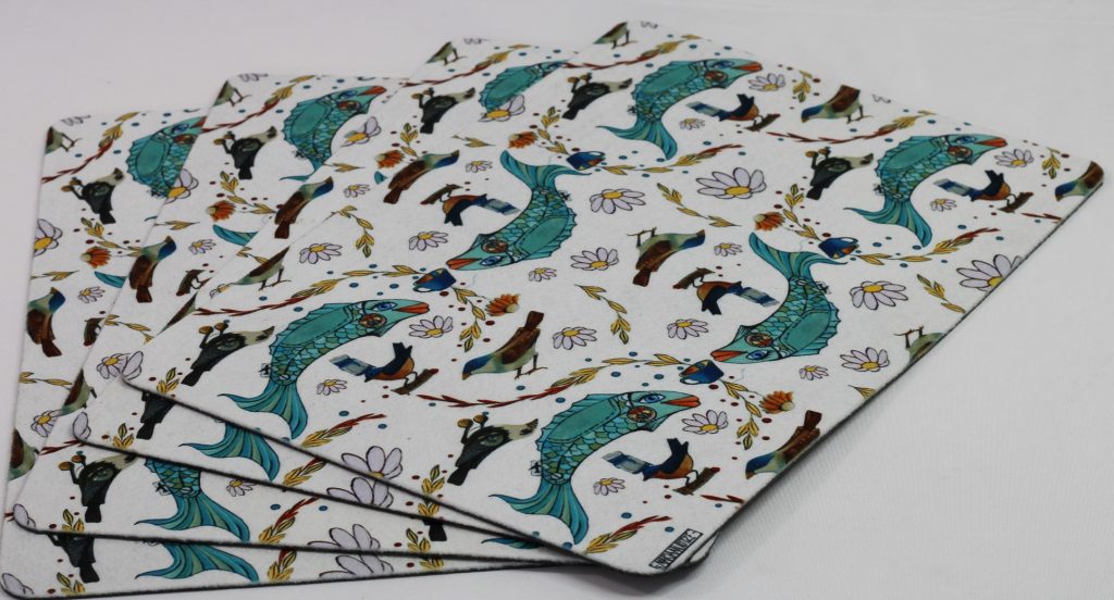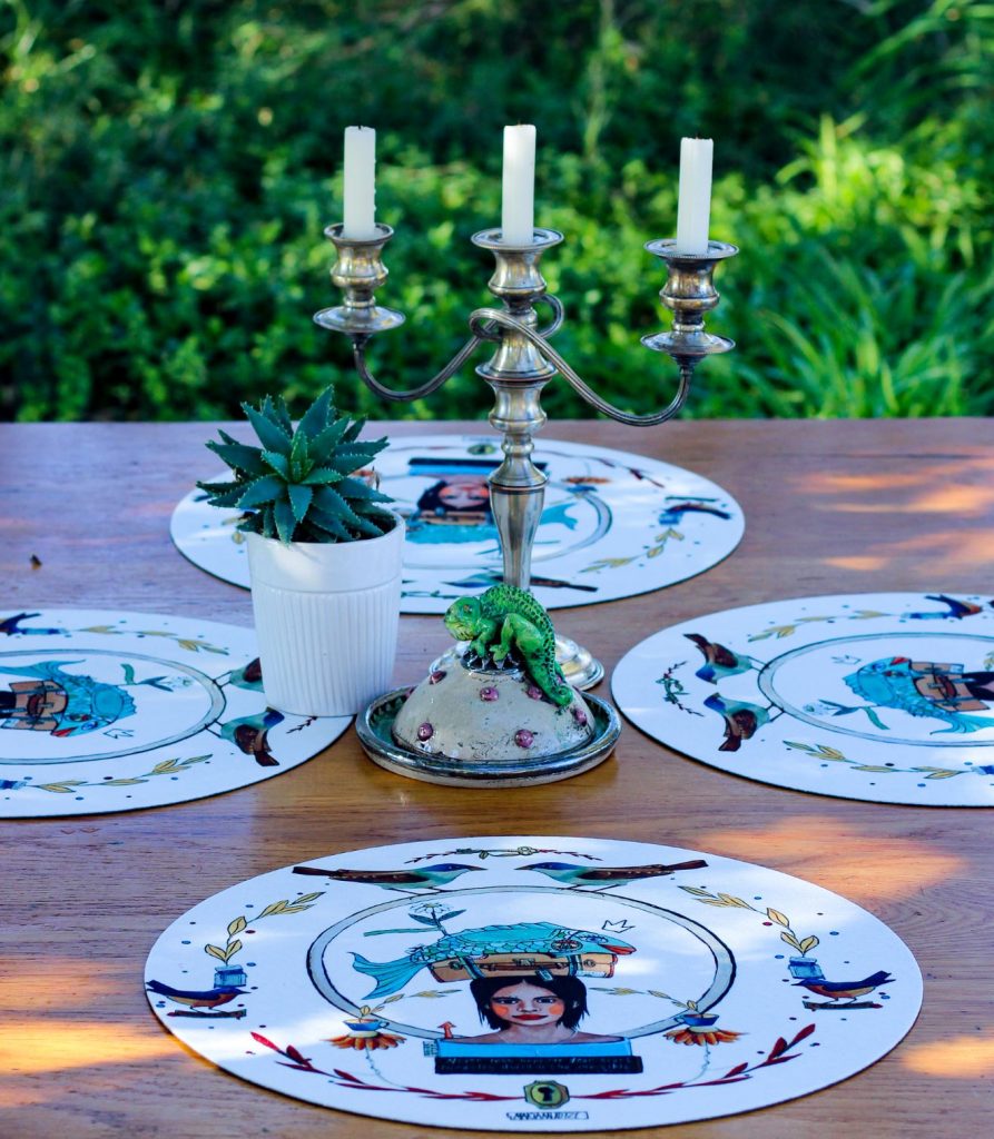 I displayed it on a blank canvas as I pictured it in the design and send a photo to a graphic designer, Leezandra – she fine-tuned the design for me. From there I gave her carte blanche with the designs of the placemats, using smaller images out of the bigger picture, and I love the outcome!